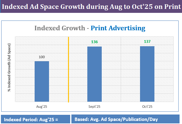 Print media fared better with a 35% spike during the same period, while radio grew 16-25%, driven largely by festive demand rather than structural changes.
